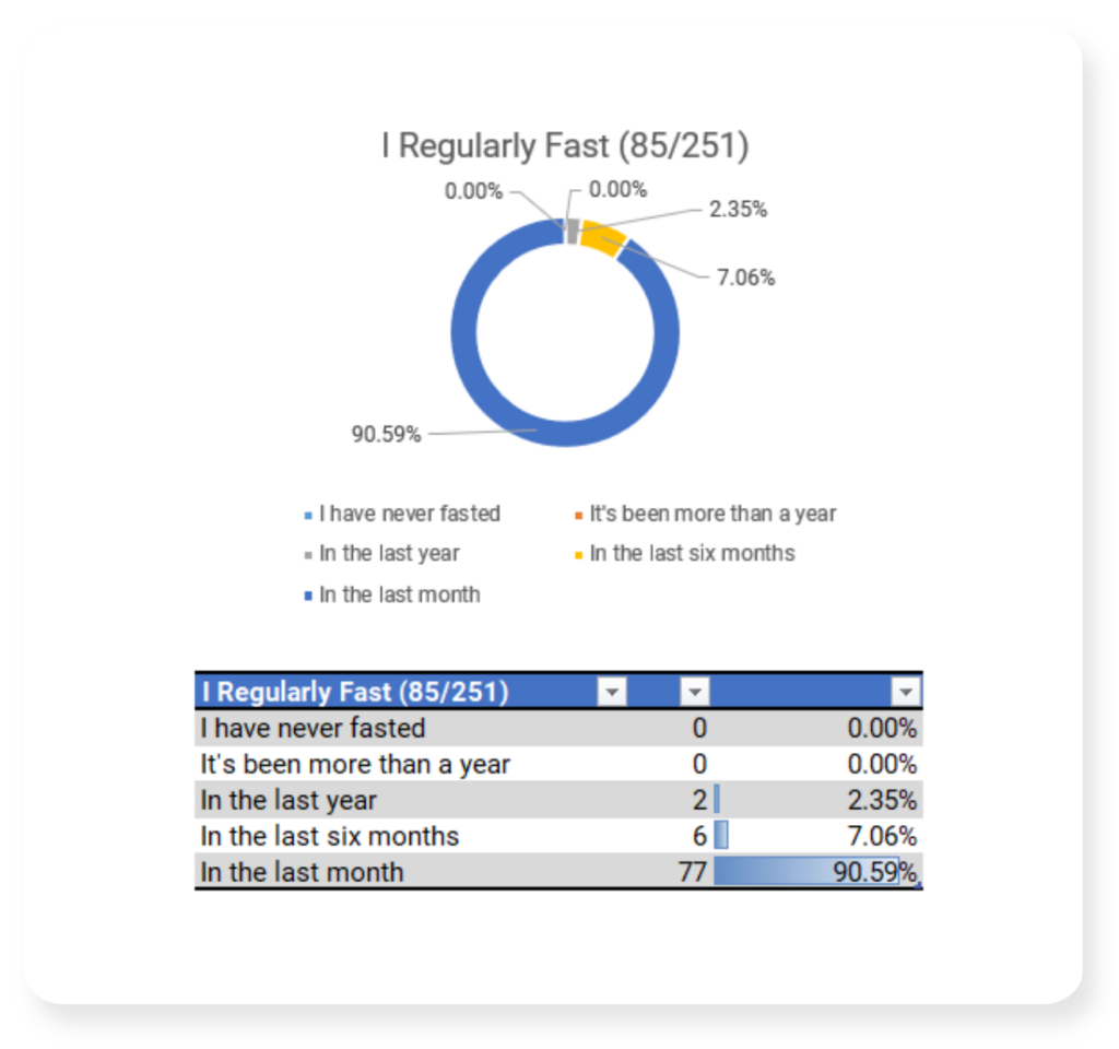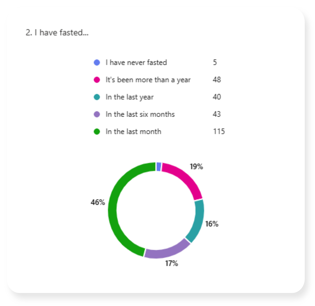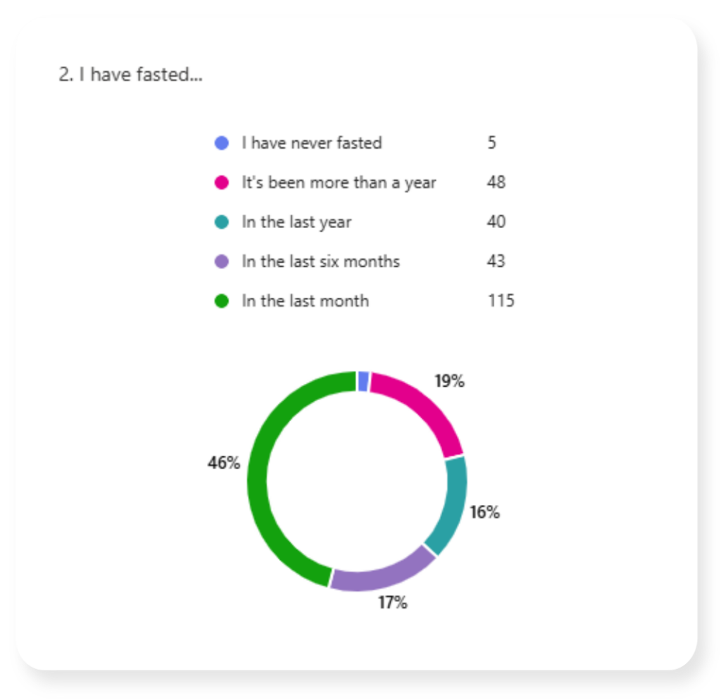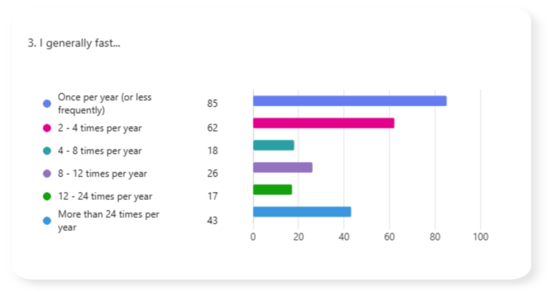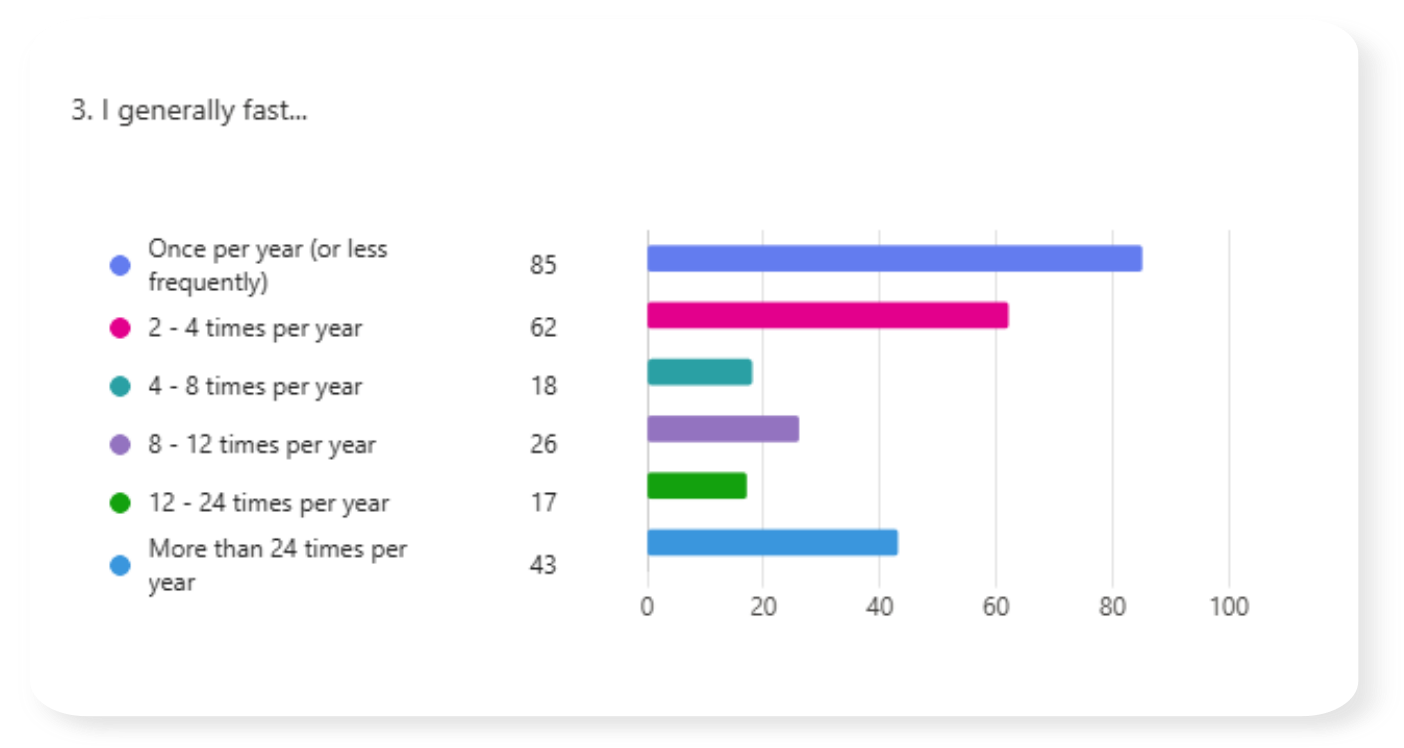 In March of 2026 I shared a survey link asking about fasting practices. This page contains the results.